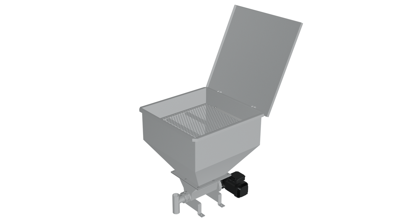 Rosca transportadora: Opcional, acoplada na saída inferior, com controle de velocidade e acionamento elétrico
